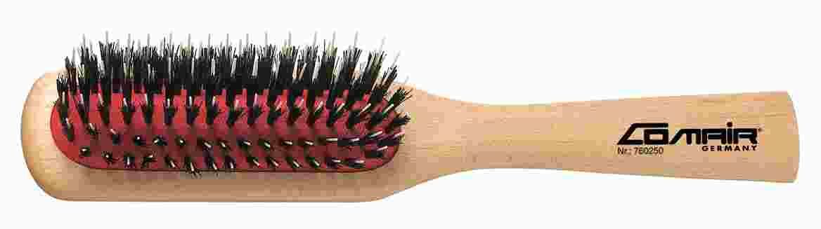 Comair fából készült sörte hajkefe természetes szőrből, pneumatikus párnával, kiálló Nylon tüskékkel, csúszásmentes nyéllel. Kialakításánál fogva alkalmas gyors, könnyű hajkibontáshoz, kifésüléshez, és hosszabbított haj kíméletes ápolásához. A kiálló tüskék nagyon jól vezetik a kefét a hajban, segítik a haj kíméletes, könnyű, rángatás mentes kibontását. Comair hajkefe méretei: fejszélesség kb. 40mm, hosszúság 220 mm
